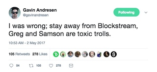 But if you take the time to read the transcript of what he actually said, it is entirely consistent with his claims from 2016. And more importantly, his comments were congruent with someone who was at the very least one of the very earliest developers of Bitcoin, and who is frustrated with the direction that has been taken by the Bitcoin Core, and especially the segwit proposal. I will take apart his comments further down.