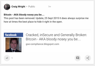 Posted by Craig Wright at Thursday, September 10, 2015 on gse-compliance.blogspot.com.au